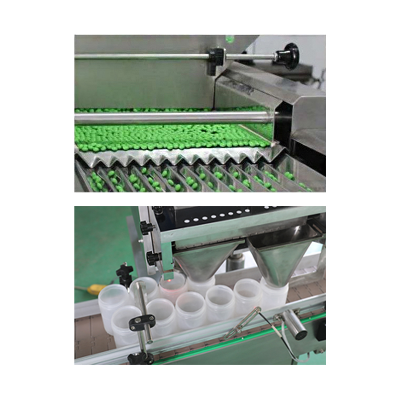 采用振動式多通道下料、計算機控制,動態掃描計數、自動輸瓶、系統自檢、故障指示報警、自動停機等先進技術,按GMP標準設計,是集光、電、機一體化的高科技藥品和食品計數灌裝設備。