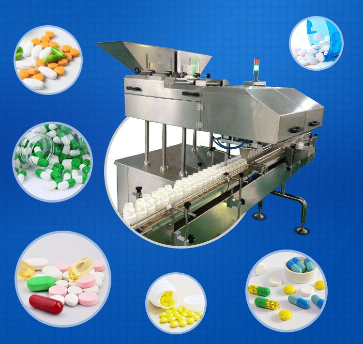 兼容性好:可以對片劑(包括異型片)、膠囊、軟膠囊(透明、不透明)、丸劑等固體制劑或固體顆粒進行計數裝瓶。